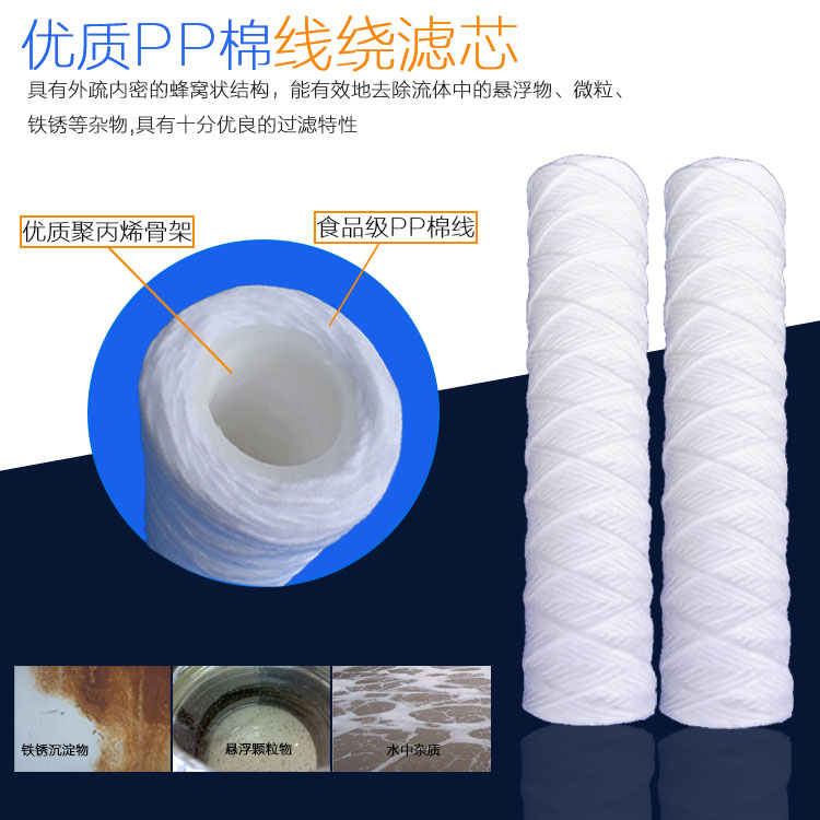 4、聚丙烯线绕滤芯可用水酸碱类,化学溶液等非有机溶液,使用温度≤60℃