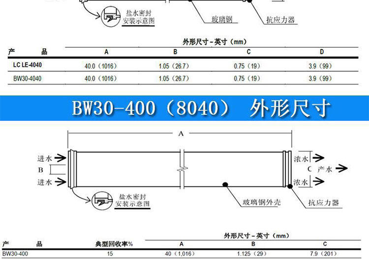 陶氏LC LE4040反渗透ro膜直饮净水机滤芯 原装进口陶氏膜lcle4040