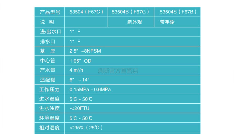 润新多路控制阀F67B F67C F67G 反冲洗自动多介质过滤阀 53504