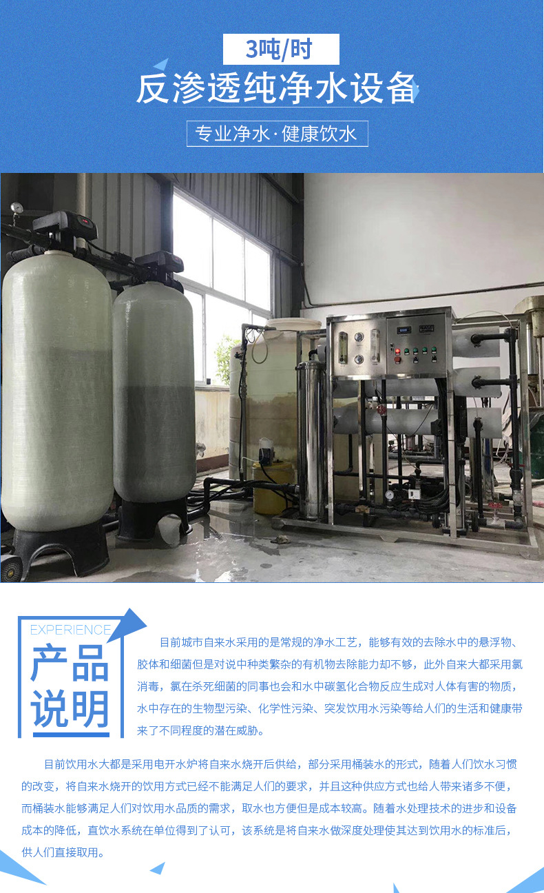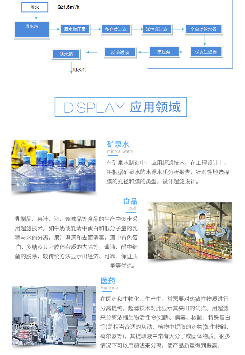 采用预处理、反渗透技术、超纯化处理以及后级处理等方法,将水中的导电介质几乎完全去除,又将水中不离解的胶体物质、气体及有机物均去除至很低程度的水处理设备。