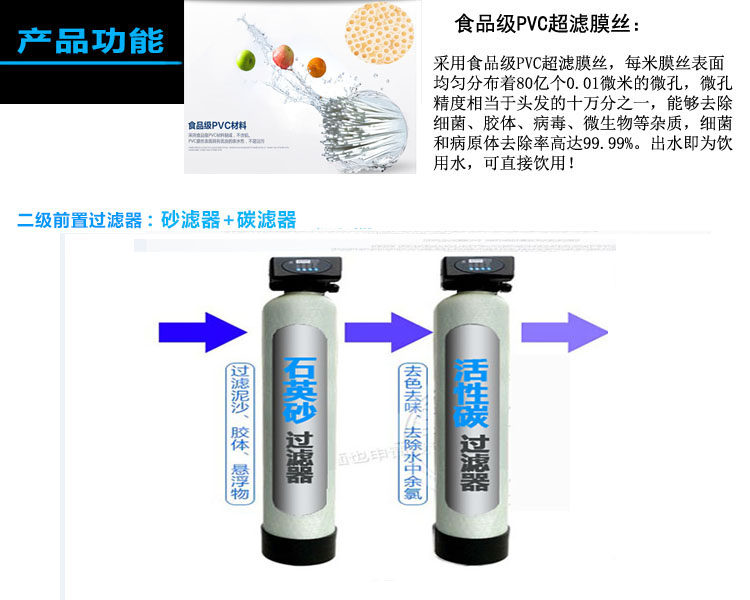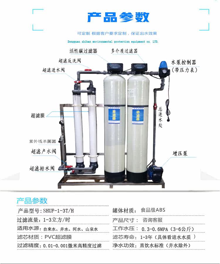 » 1-3T自动超滤净水设备宾馆饭店井水自来水过滤器中央净水器