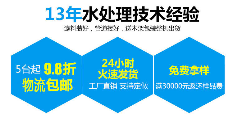 6.精密过滤器 过滤细微的杂质,悬浮物,藻类,细菌等,保证后级进水的水质。