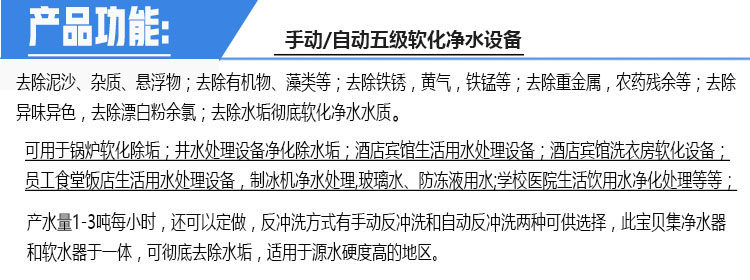 10、应用范围:农村井水软化过滤,农村生活饮用水过滤软化,宾馆酒店净水处理,锅炉软水处理过滤,洗涤洗浴用水软化等等、、、、、、