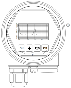 通过显示屏幕上的4个按键对仪表进行调试。调试菜单的语言可选,默认是中文的。调试后,液晶一般就只用于显示当前测量的数值,透过玻璃视窗可以非常清楚地读出测量值。