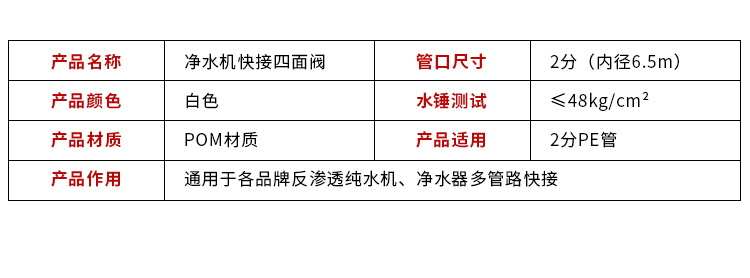 - 无卡片型纯水机RO机四面阀开关 快接四面阀 四面接1/4管四通