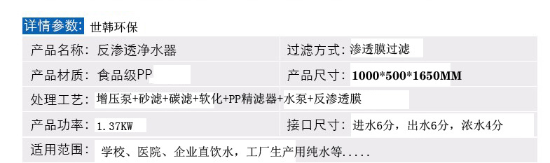 东莞市世韩环保设备有限公司专业生产供应反渗透水处理设备、工业纯水设备、家用净水器、井水/自来水过滤器、锅炉软化水设备、超滤净水系统、水处理耗材配件等等,欢迎新老客户来电咨询。