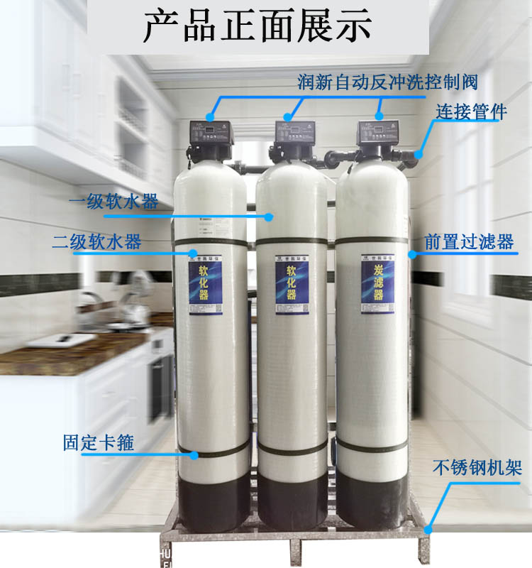 工厂直销,大流量。适用于家用/工业用,主要功能除水垢兼具过滤功能。适用于高硬度,水垢很严重的水源。双级软化除垢处理,轻松达到国家软化水出水标准