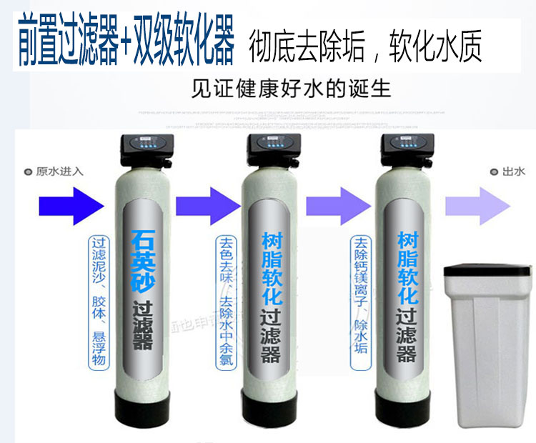 进水水原:自来水,地下水等各类地表水和地下水。彻底去除水垢(水碱),降低硬度,软化水质。