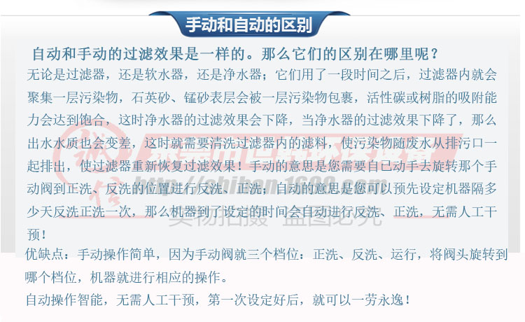 5、控制方式:手动反冲洗/自动反冲洗(根据需要自已选择)
