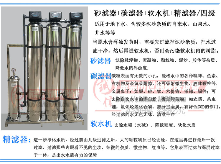 广东4T井水 自来水四级软化水设备去除泥沙杂质异味水垢过滤器
