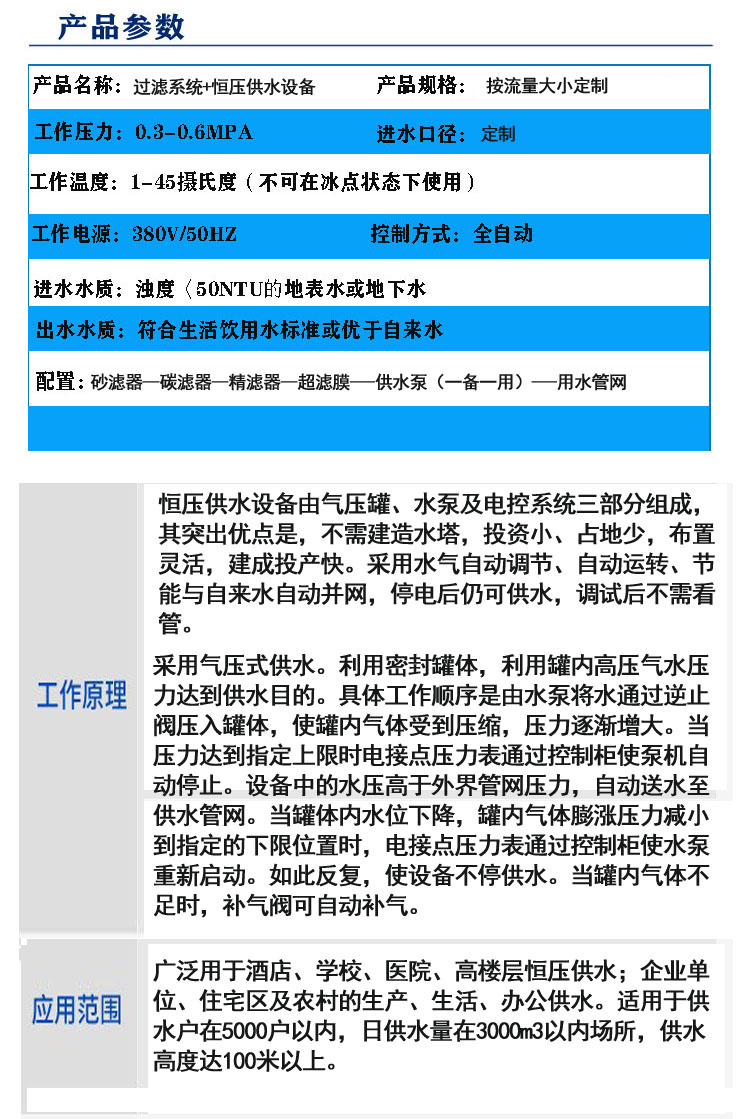 东莞世韩5吨变频供水过滤设备高楼小区企事业单位集中供水设备