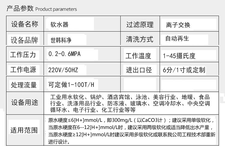 进水水源:井水自来水山泉水水库水等各类地表水(当源水是井水时,需要加配