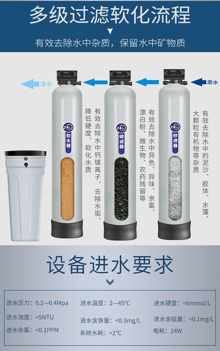 广东大型软化水处理净水设备农村自来水井水除泥沙杂质水垢过滤器